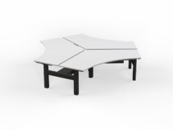 Agile+ shared 120 degree clusters are an ideal system for maximising floor space. The system also integrates seamlessly with the single workstation frames, and can be further enhanced with fabric privacy panels, monitor arms and personal storage units.